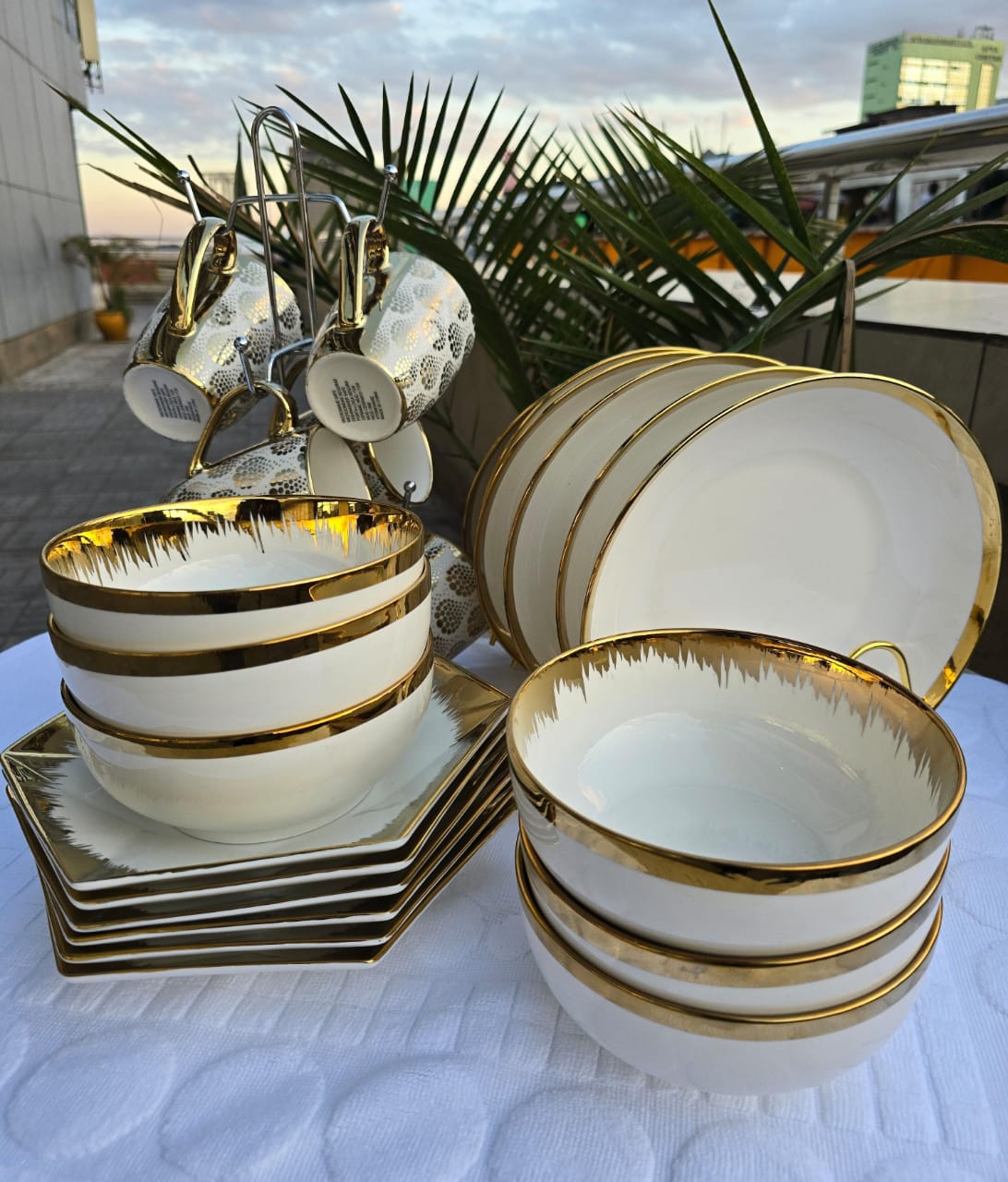 24pcs black dinner set with gold rim