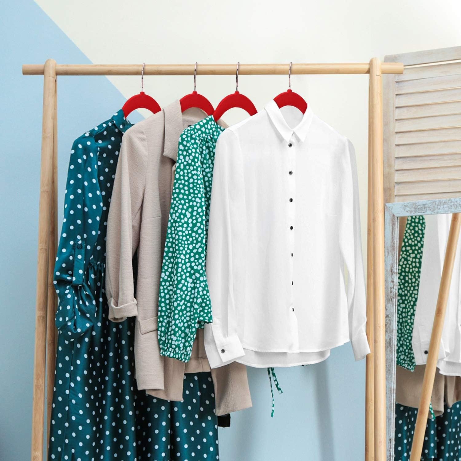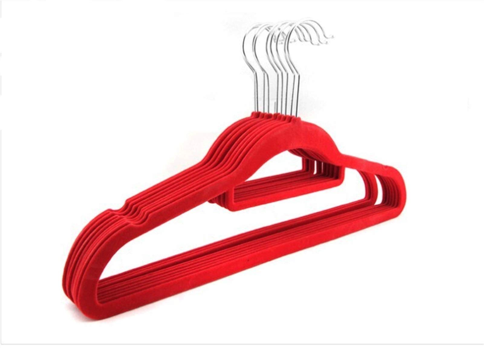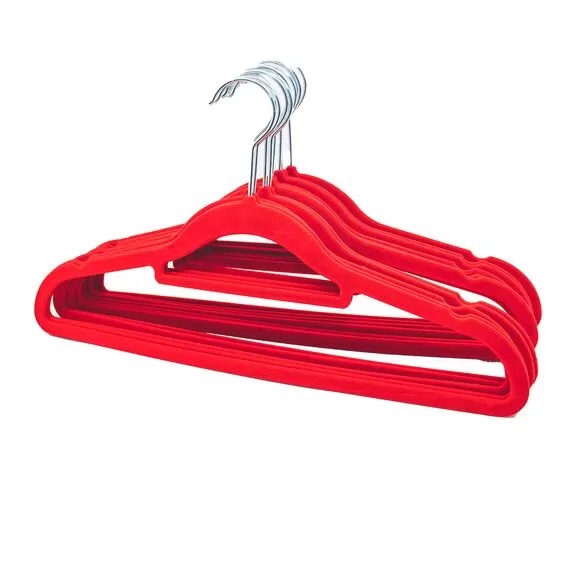 5pcs pack Red & Black Velvet Hangers,Clothes Hangers Non Slip stainless steel Hook, blouse hanger, jacket/suit hanger, non slip trouser hanger Flocked Hangers Heavy Duty Adult Hanger velvet for Coat, Suit etc