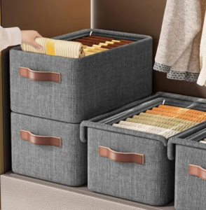 This storage box allows you to keep your jeans, pants, hoodie, t-shirt or sweater organized.