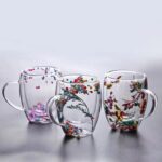 *Dried flowers Insulated Double Wall Glass Cup Coffee Cup with Handle Household Hot