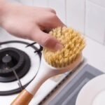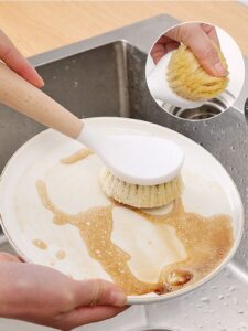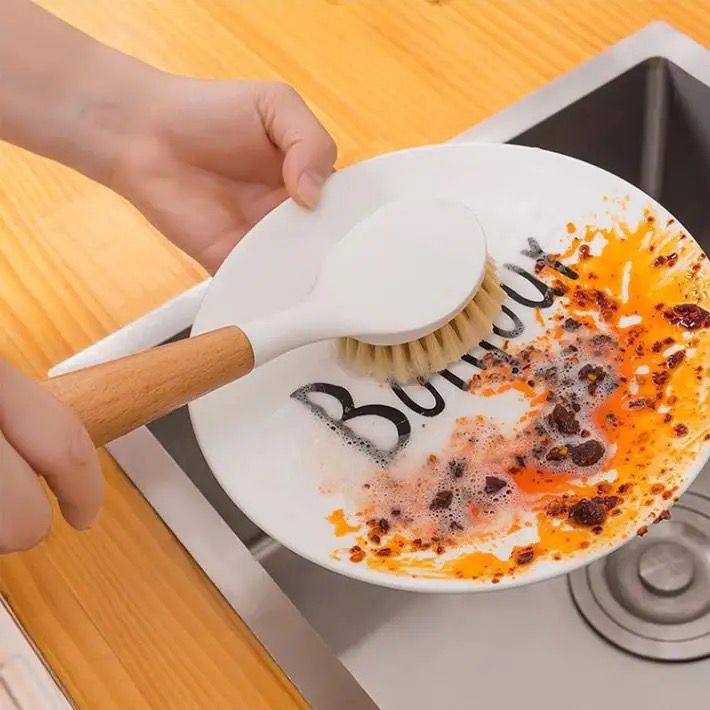Hard bristle Pot/pan cleaning brush with wooden handle