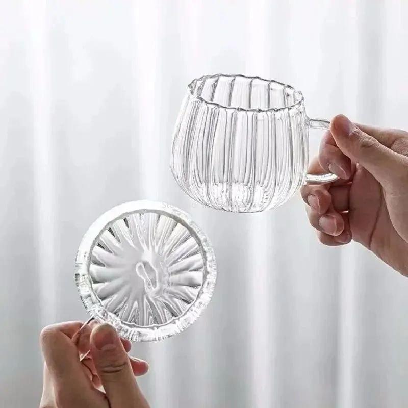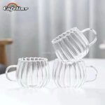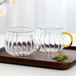 12oz Heat Resistant Coffee Milk Water Clear Glass Cup with Yellow Handle.